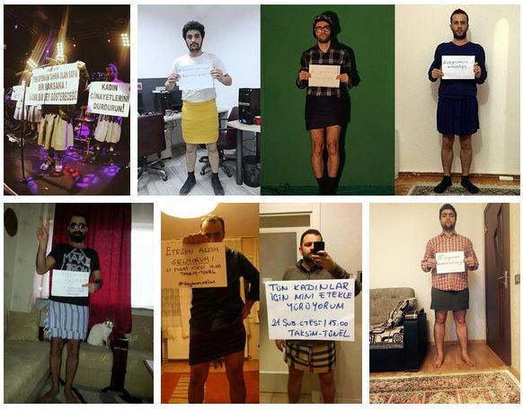 Online, the hashtag #ozgecanicinminietekgiy which roughly translates as: “Wear a miniskirt for Ozgecan” has gone viral with men in Turkey and neighbouring Azerbaijan tweeting images of themselves in skirts in a symbol of solidarity.