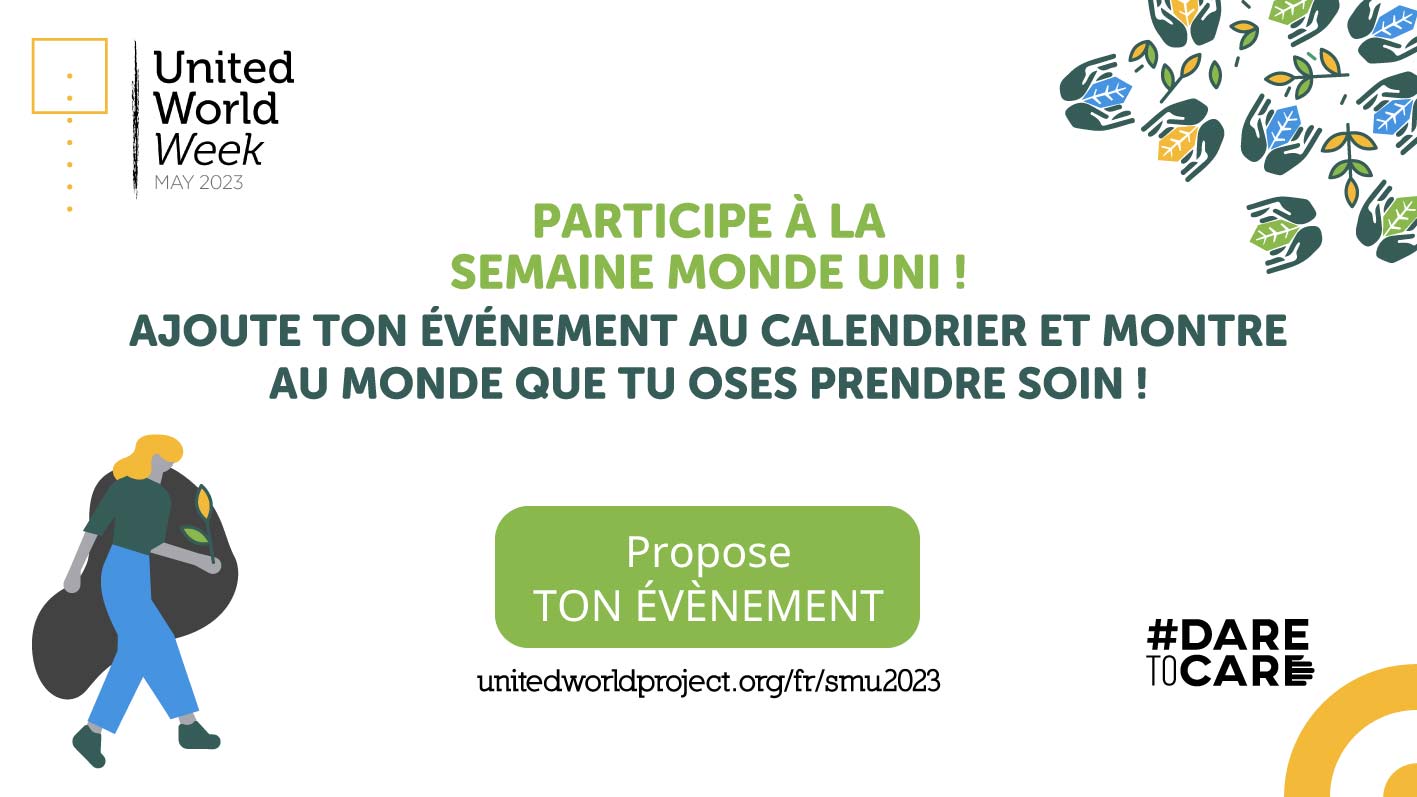 | | Au terme de la Semaine Monde Uni, nous diffuserons une vidéo enregistrée en différentes langues : en plus d’exposer un résumé des activités menées pendant la Semaine Monde Uni, elle lancera le nouveau Pathway qui sera notre campagne tout au long de l’année prochaine! | |